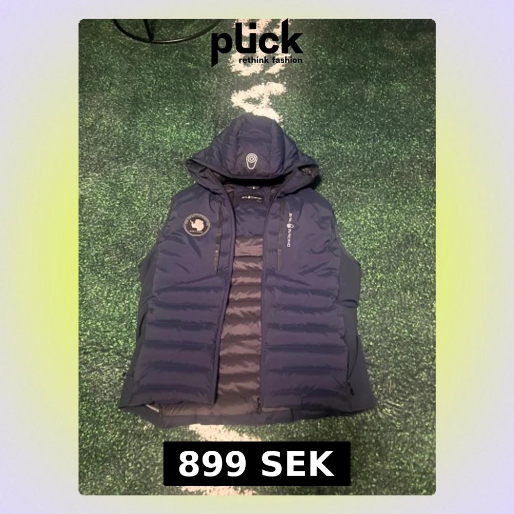 Snygg blå dunväst från Sail Racing med vadderad design och avtagbar huva. Västen har dragkedja framtill, två sidofickor och coola logodetaljer på bröstet och huvan. Bra skick. Vid snabb affär bättre pris 🏆