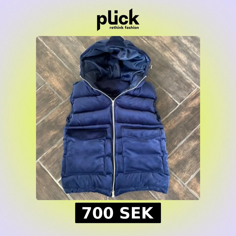 Snygg blå dunväst från vendiera med dragkedja och huva. Västen har två stora fickor framtill och är perfekt för kyligare dagar. Den har en stilren design med ett diskret märke på fickan. Knappt andvänd. Västen är mycket eftertraktad och är slutsåld på vendieras hemsida.