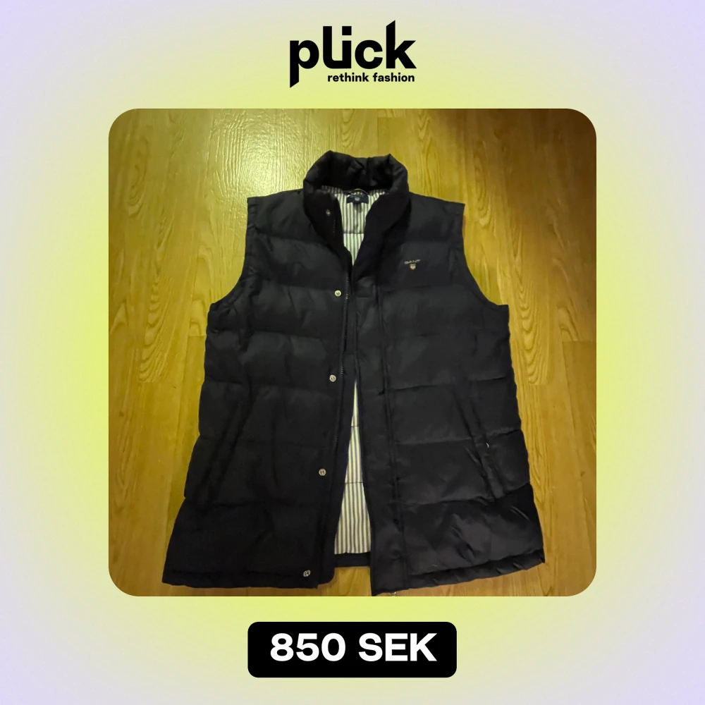 Säljer en snygg navy dunväst från GANT i mycket bra skick. Västen har en klassisk design med knappar och en randig insida. Perfekt för höst och vår när du vill hålla dig varm men ändå se stilren ut. Passar bra till både vardag och lite finare tillfällen.