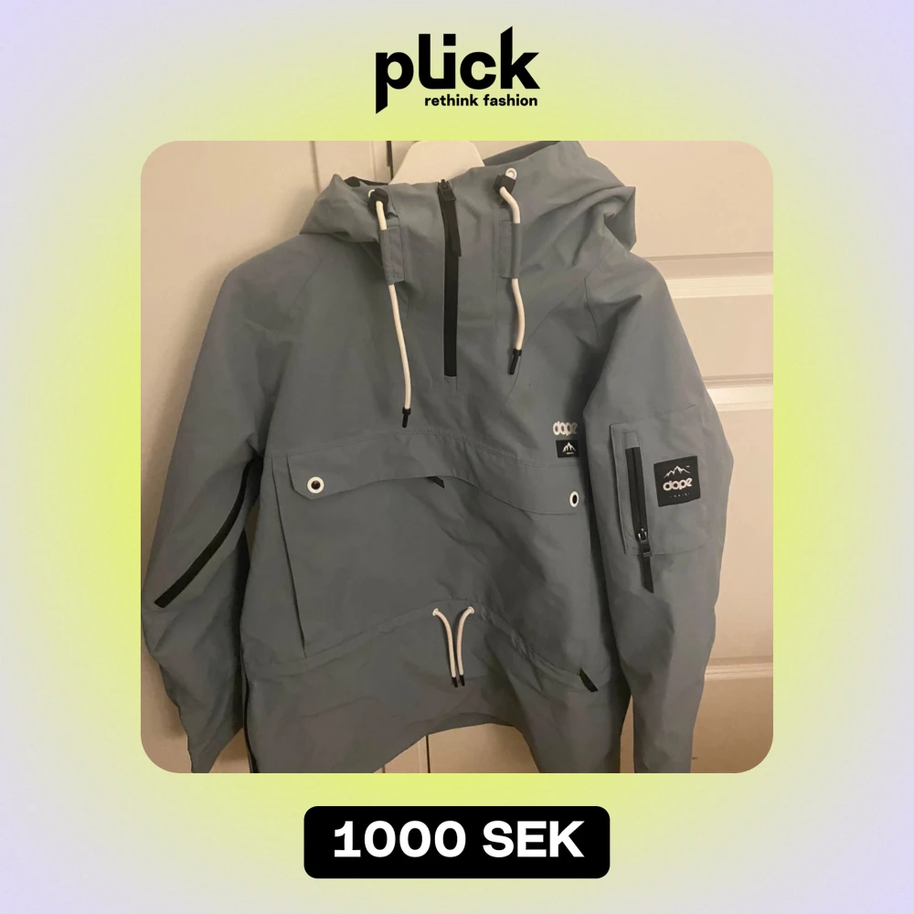 Säljer en grå/ lite blå aktig jacka från Dope i storlek L. Jackan har en praktisk huva, dragkedjor, fickor och snören. Skyddar mot kyla, vind och regn. Den är i mycket bra skick, bara använts 2 gånger till skidåkning. Original pris är 1900kr