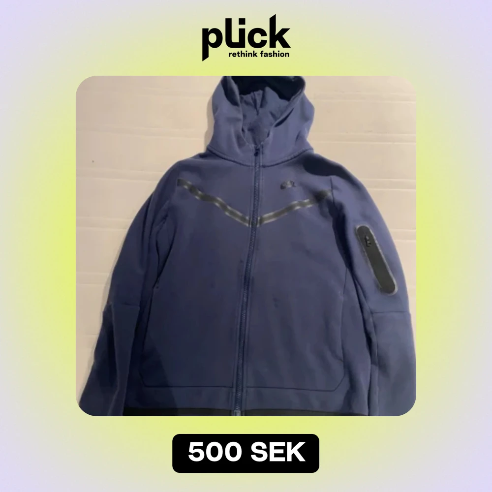 Säljer en snygg blå Nike tech fleece från Nike i storlek (158-170 cm). Den har en dragkedja framtill och en praktisk ficka på ärmen. Perfekt för kyliga dagar eller som en extra lager under jackan. Hoodien är i bra skick och redo för nya äventyr!