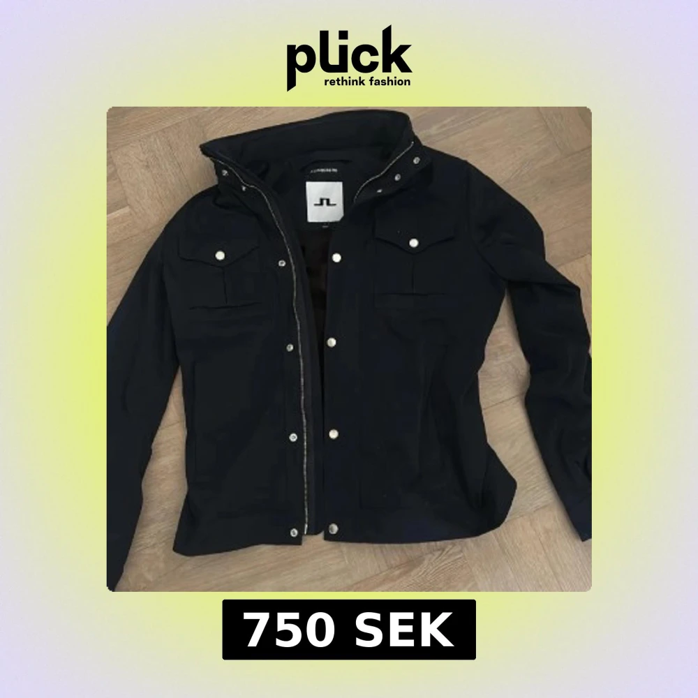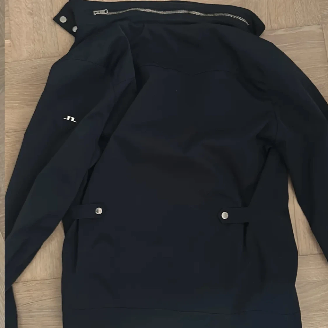 Stilren marinblå jacka från J.Lindeberg med silverfärgade knappar och dragkedja. Jackan är i storlek L och den är knappt använd.