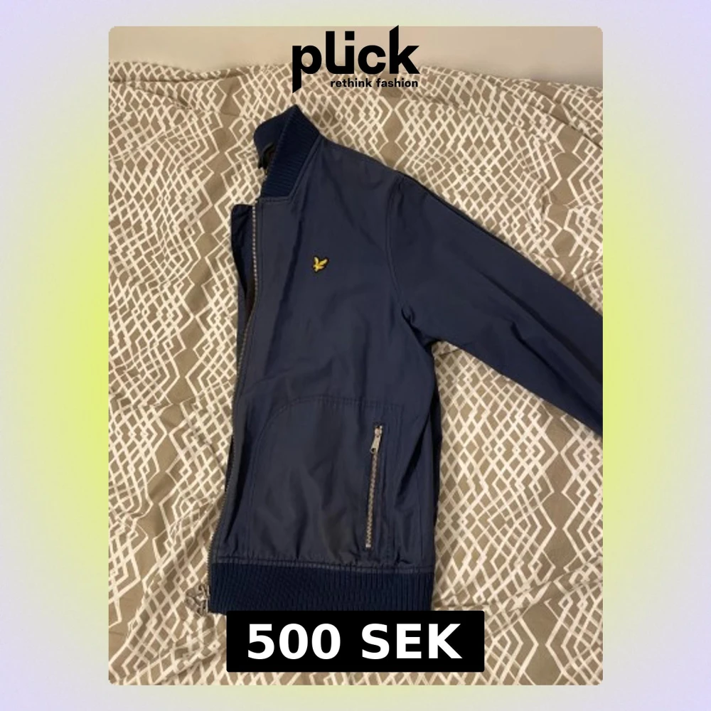 Snygg mörkblå bomberjacka från Lyle & Scott med gul logga på bröstet. Jackan har ribbade muddar, två fickor med dragkedja och hel dragkedja framtill. Tillverkad i polyester och har en klassisk, stilren look som passar perfekt till streetwear. Passar mig som L perfekt