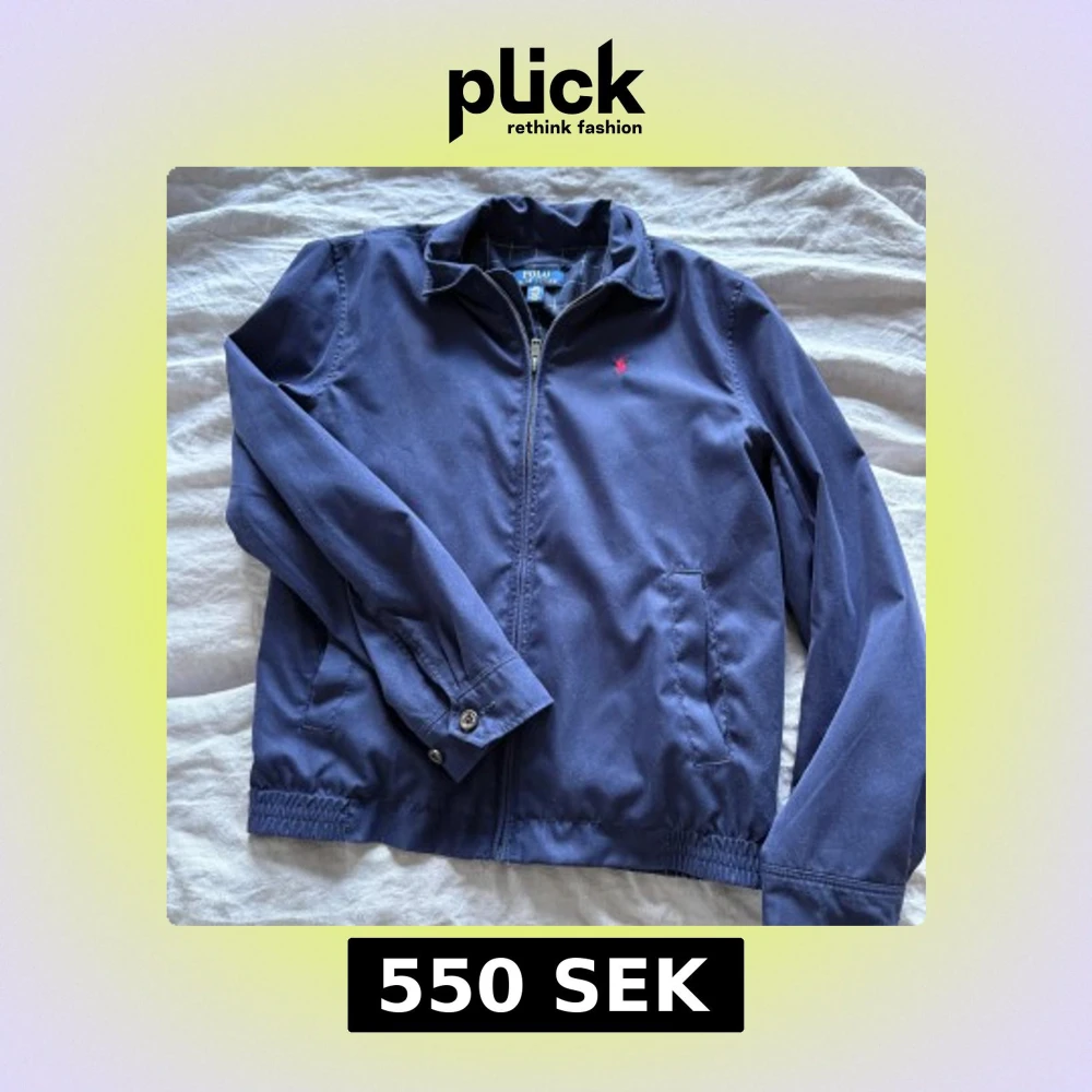 Snygg marinblå jacka från Polo Ralph Lauren med dragkedja framtill och rutigt innerfoder. Perfekt för dig som gillar klassisk och clean stil. Storlek 14-16 år L juniorstorlek