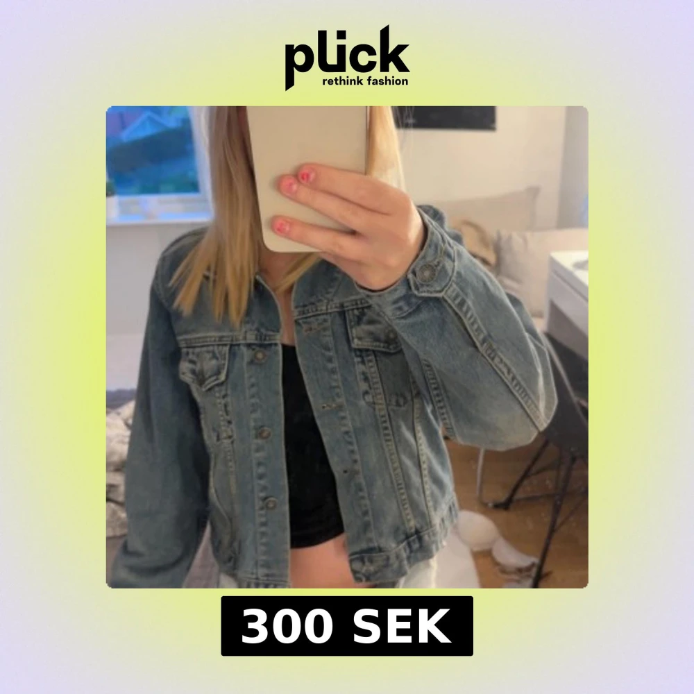 Säljer en klassisk blå jeansjacka med knappar framtill och två bröstfickor. Jackan har en normal passform och långa ärmar. Perfekt att slänga över en t-shirt för en avslappnad look.