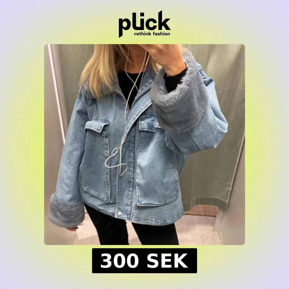 Fin och varm blå jeansjacka med mjukt foder i armar och hals, sitter oversize. Använd men är kemtvättad så är som ny 💘