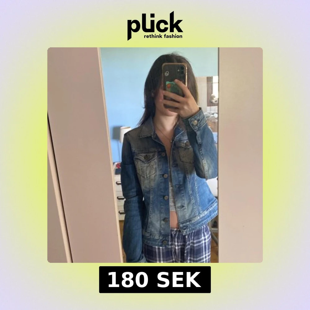 Säljer en klassisk blå jeansjacka från Replay med snygga slitningar och bronsfärgade knappar. Jackan har två bröstfickor med lock och knappar samt markerade sömmar för en cool look. Perfekt att slänga över en t-shirt eller hoodie.