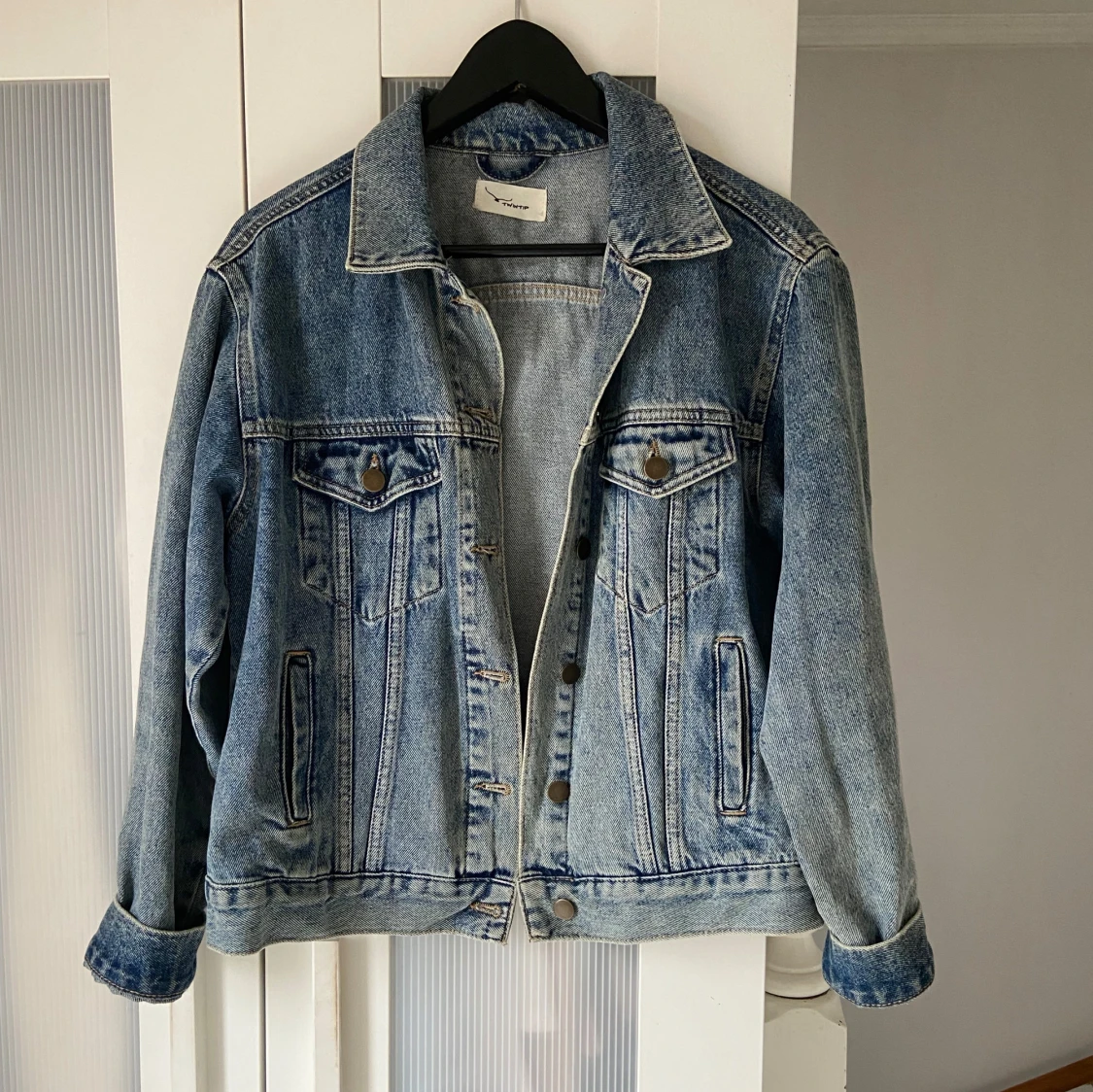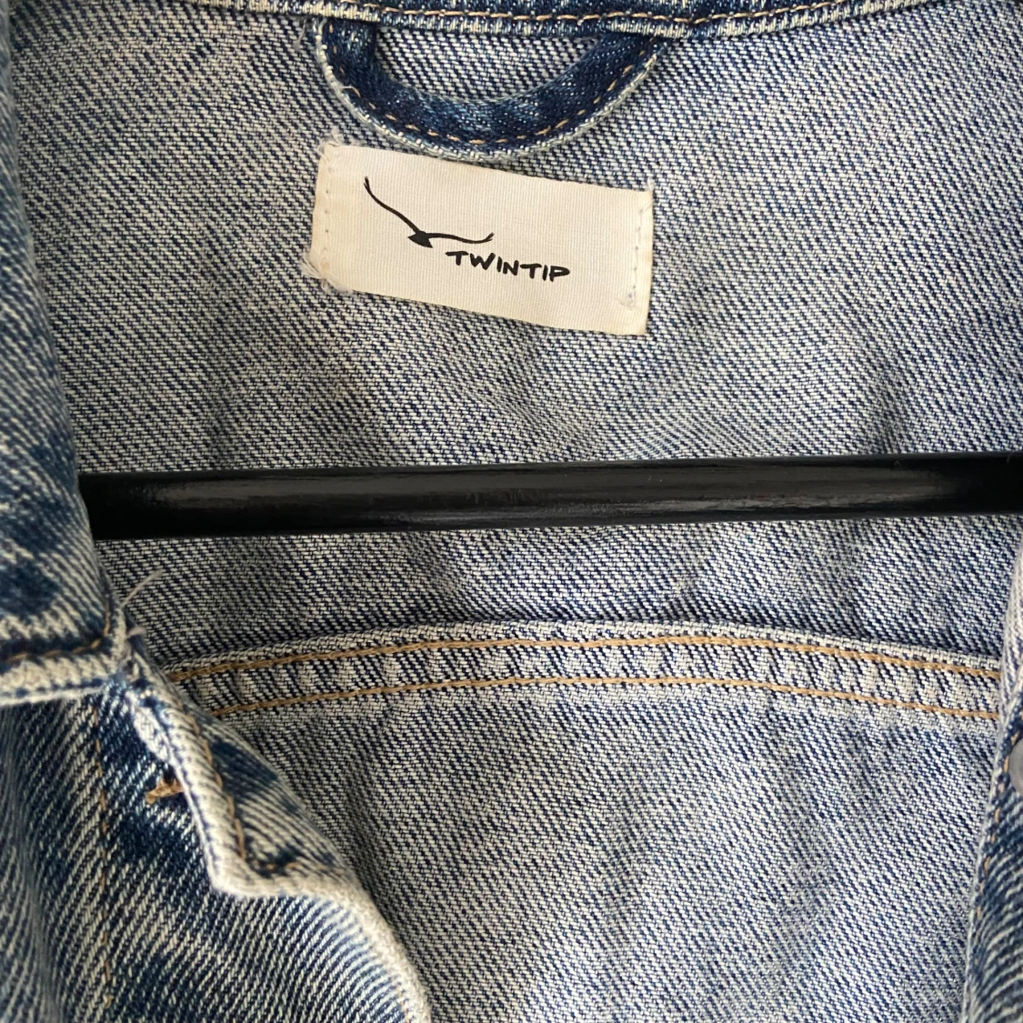 Säljer en klassisk blå jeansjacka från Twintip. Jackan har en oversize passform med knappar framtill. Perfekt för en avslappnad stil.