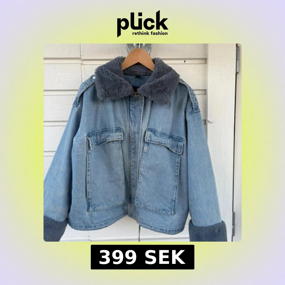 Säljer en snygg blå jeansjacka med grå fuskpäls på krage och ärmslut. Jackan har en dragkedja framtill och stora fickor med lock. Perfekt vår jacka ! vet inte storlek men passar mig som är S-M