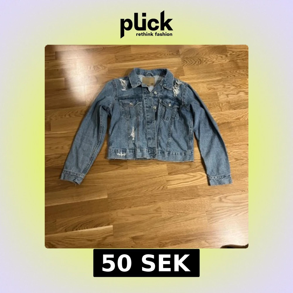 Säljer en blå jeansjacka från 157 med coola slitningar på axlar och framstycke. Jackan har klassisk krage, knappar framtill och två bröstfickor med lock. Perfekt för dig som gillar en avslappnad och trendig stil.