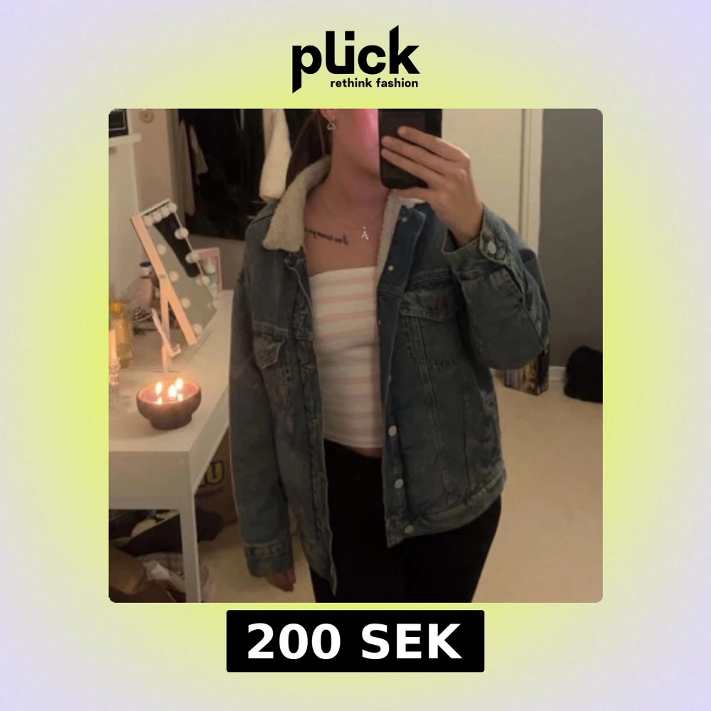 Säljer en snygg blå jeansjacka med vit teddykrage och mjukt teddyfoder på insidan. Jackan har klassisk denimlook, knappar framtill och flera fickor. Perfekt jacka inför höst och vinter 😍