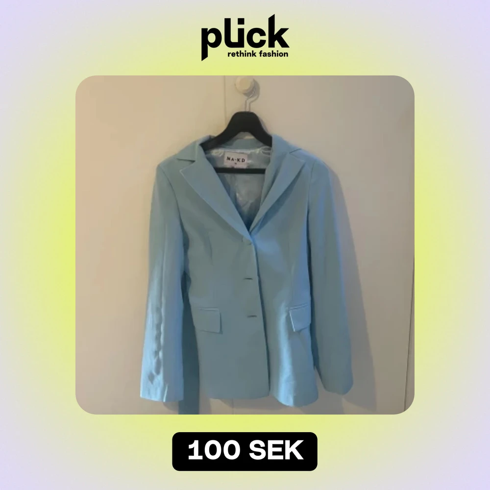 en ljusblå kavaj från NAKD, storlek XS men passar även mig med S. Tunt bekvämt material. Mycket bra skick, kan ej minnas att jag använt den en enda gång xD Möts upp i Leksand eller fraktkostnad tillkommer. Swish ✨🫶🏼