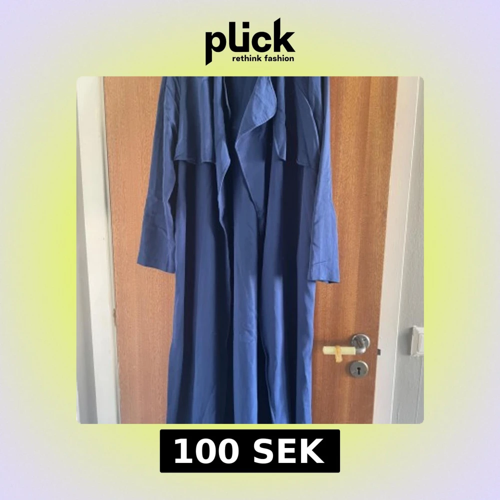 Snygg blå trenchcoat med lång och flowy design. Jackan har bred krage, långa ärmar och ett avslappnat fall. Perfekt för dig som vill ha en stilren och enkel look med lite edge. Passar dig som gillar oversized och trendiga plagg.