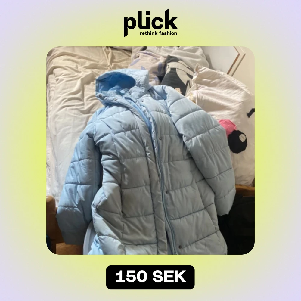 En super fin ljus blå jacka ,lite längre stolek 160 luva finns på och den e super härlig att ha på sig när de är lite kallare