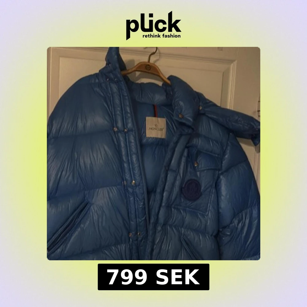 Säljer en blå dunjacka från Moncler med ikonisk logga på bröstet. Jackan har quiltad design, hög krage och tryckknappar i metall. Perfekt för kalla dagar och riktigt snygg att bära till streetwear eller casual outfits. Finns en qr kod men tror inte jackan är äkta.
