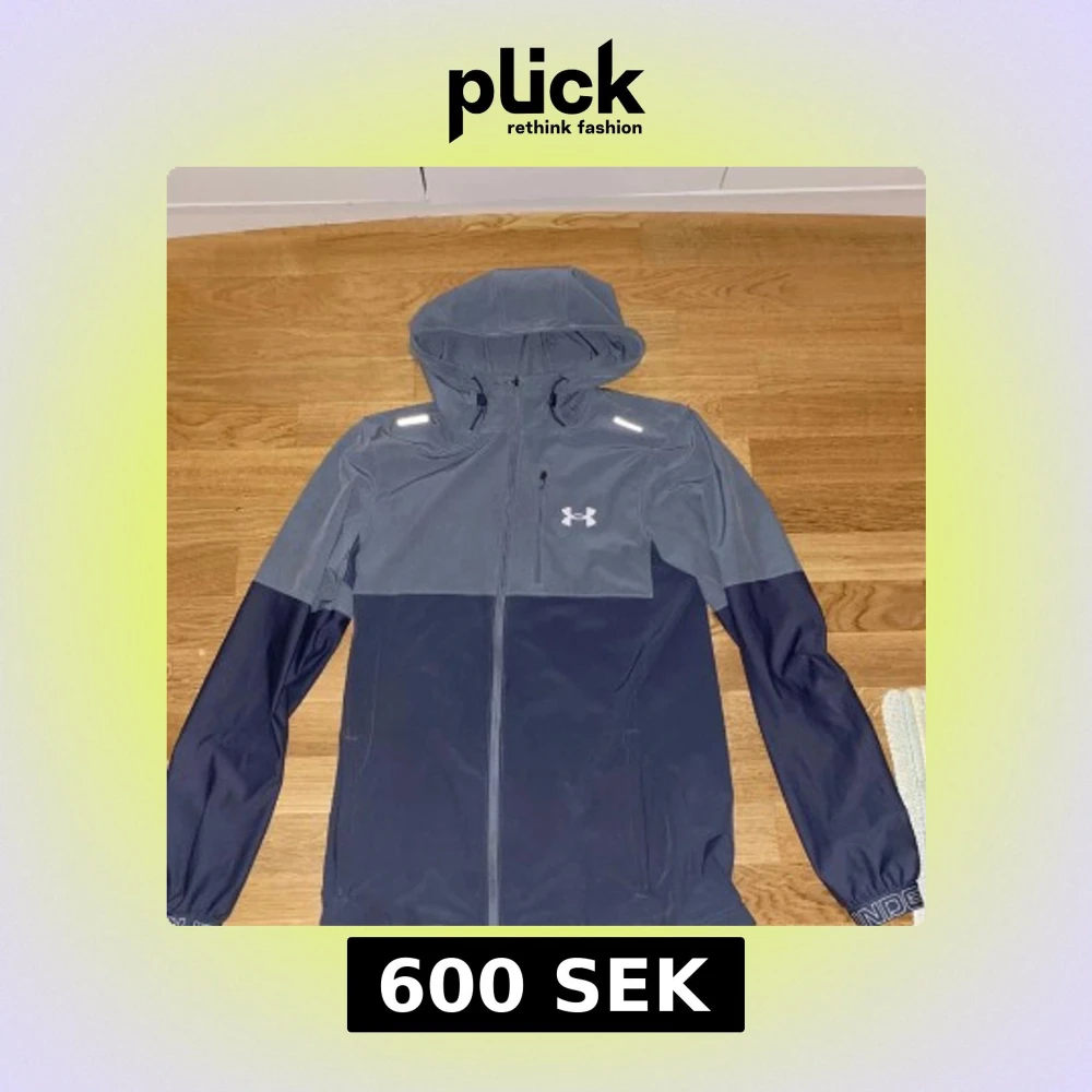 Snygg vindjacka från Under Armour i två nyanser av blått och grått. Jackan har huva, hel dragkedja framtill, reflekterande detaljer på axlarna och logga på bröstet. Perfekt för träning utomhus när det blåser. Fickor med dragkedja och sportig look.