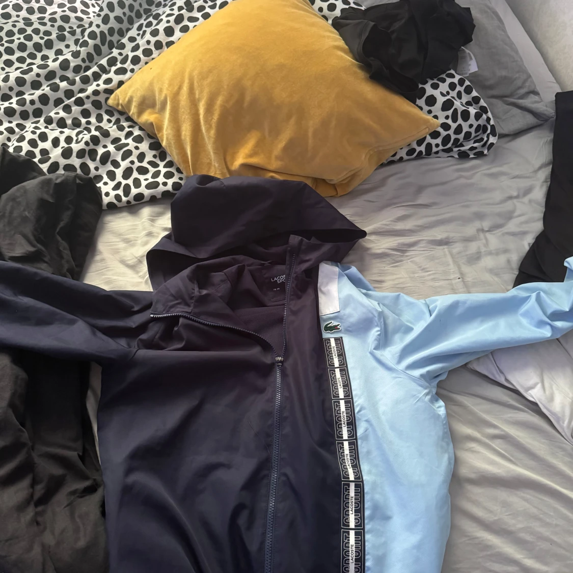 Jackan är perfekt till sommaren när det blåser och rengnar den funkar allmänt under hela sommaren den är som en tunnare hoodie. Köpte den för 1500 på Lacoste.