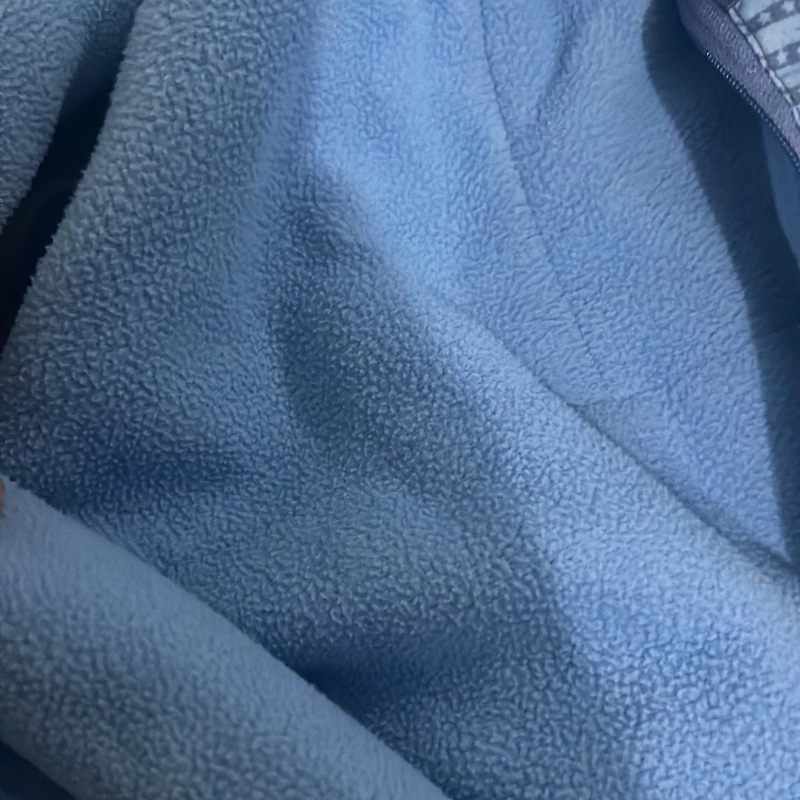 Blå overall med huva och dragkedja framtill. Overallen har mönstrade partier i blått och är fodrad med mjuk fleece på insidan. Perfekt för kyliga dagar och enkel att ta på tack vare dragkedjan. Elastiska muddar vid ärmar och ben för extra komfort.