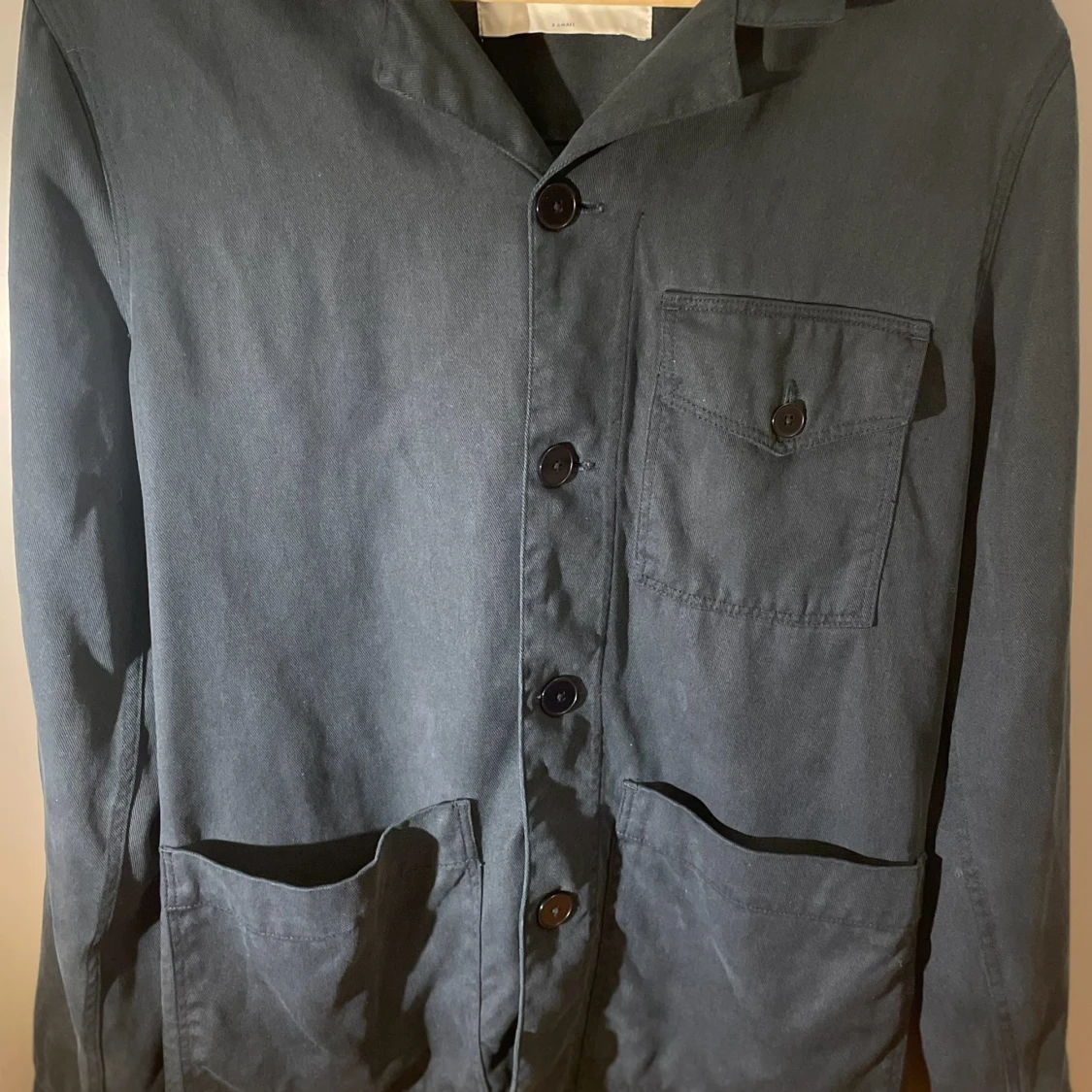 Snygg blå overshirt från A Day's March i 100% Tencel. Jackan har knappar framtill och flera praktiska fickor, inklusive en bröstficka med knapp. Perfekt för lager-på-lager-stil och ger en avslappnad look. (Nytt skick nästan aldrig använd).