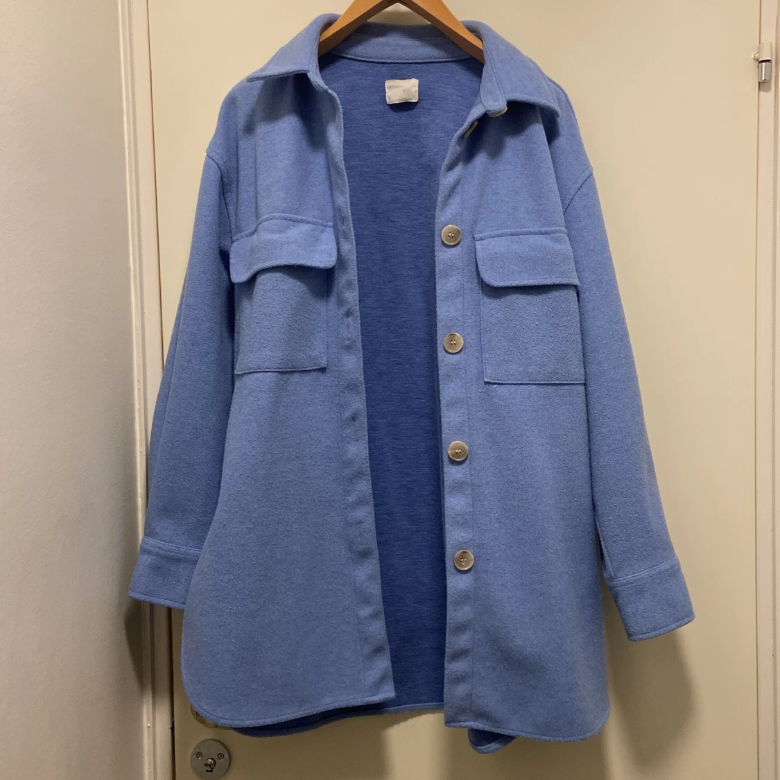 Snygg blå overshirt med stora knappar och två bröstfickor. Perfekt för lager-på-lager-stil. Den har en avslappnad passform och långa ärmar. PRIS KAN DISKUTERAS!