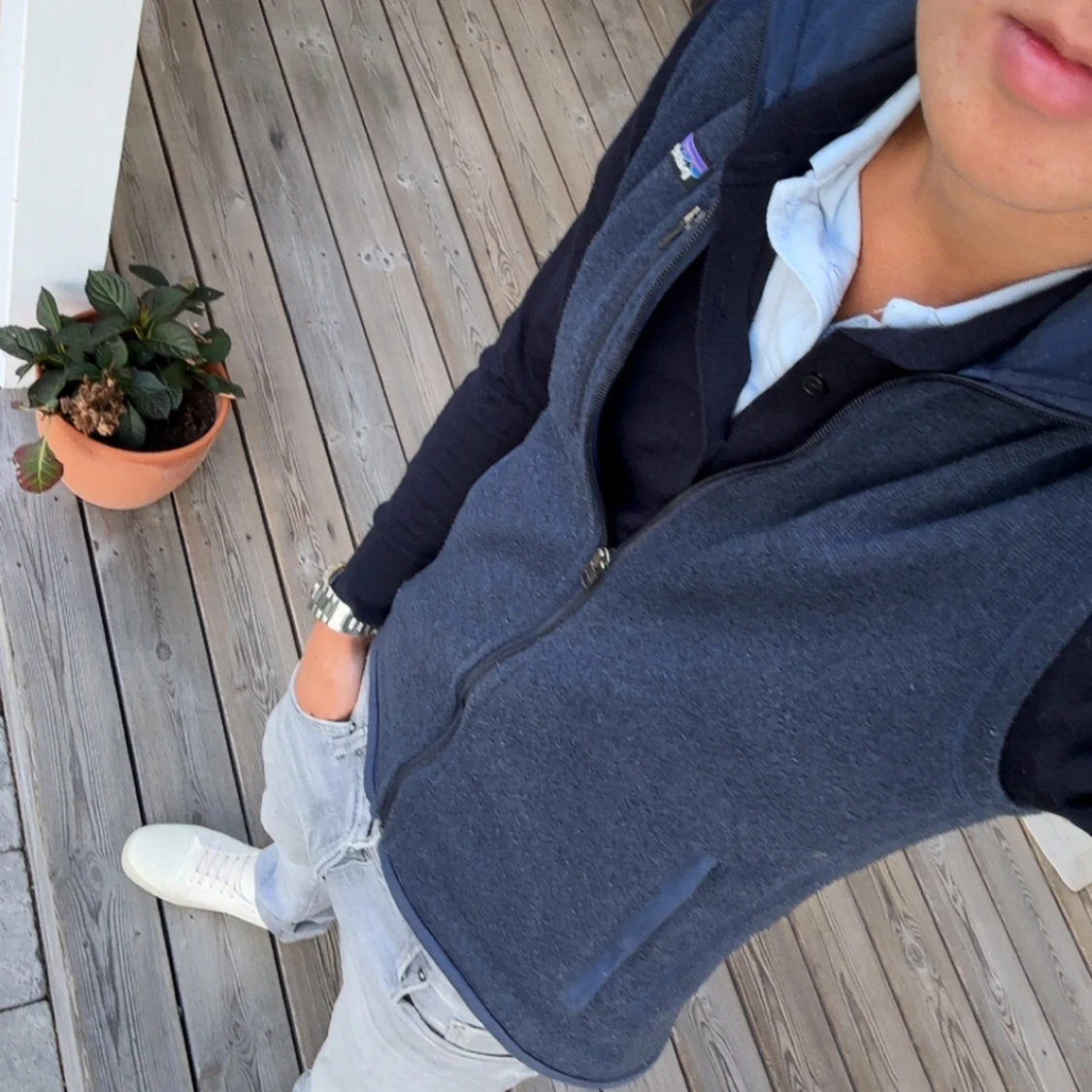 Säljer en mörkblå fleeceväst från Patagonia med dragkedja framtill och två sidofickor. Västen har en enkel, clean look och är perfekt att slänga på över en skjorta eller tröja. Bra omhändertagen, skick 8/10.