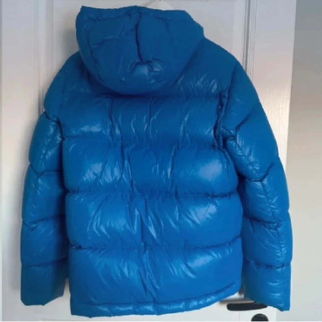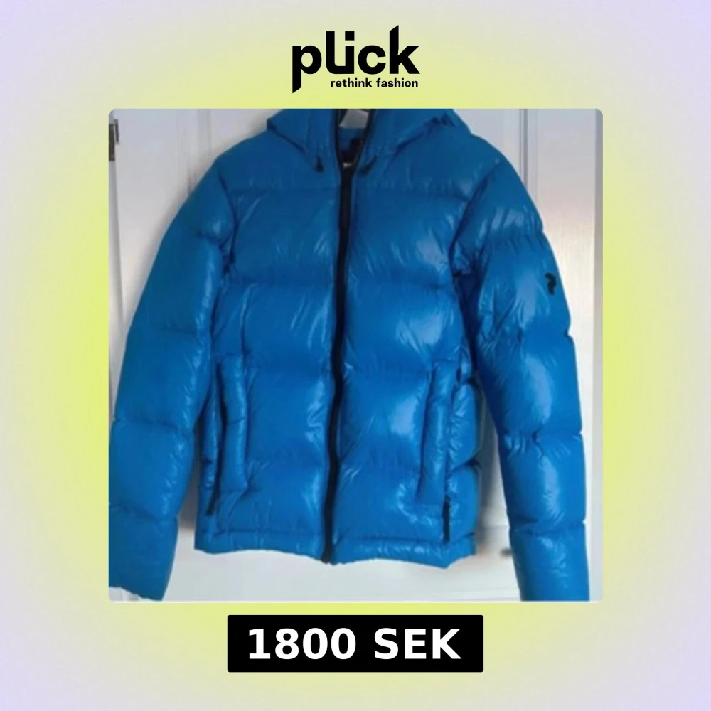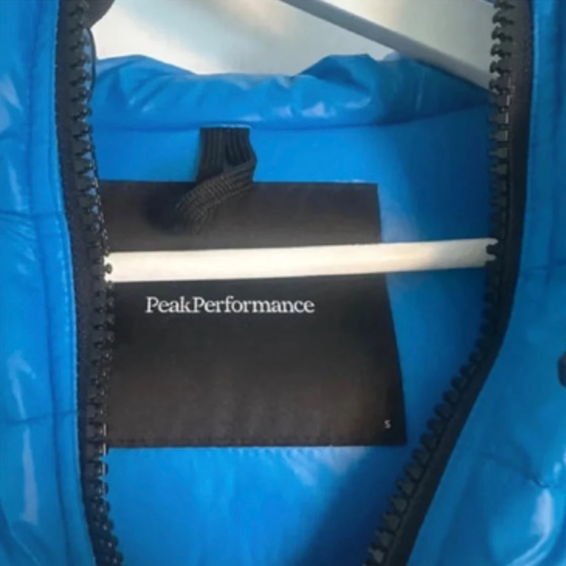 Säljer en blå dunjacka från Peak Performance i storlek S. Jackan har en puffig look, huva och dragkedja framtill. Perfekt för kalla dagar och har en riktigt snygg streetstil. Klassisk logga på ärmen och två fickor med dragkedja.