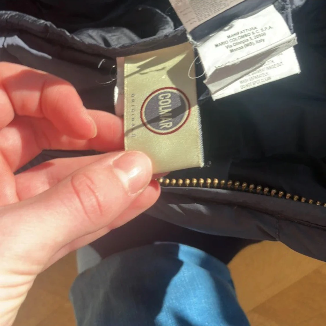 Säljer en snygg blå pufferjacka från Colmar. Jackan har en quiltad design med dragkedja och en praktisk huva. Perfekt för kyligare dagar. Märkeslogga på ärmen ger en extra touch av stil. Passa på att köpa denna trendiga jacka! 💙