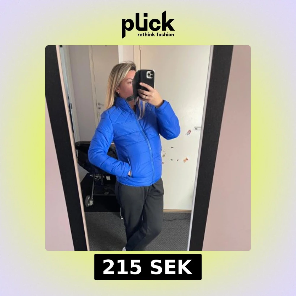 Säljer en snygg blå pufferjacka med hög krage och praktiska sidofickor med dragkedja. Jackan har quiltade detaljer upptill och är tillverkad i ett syntetmaterial som håller värmen. Perfekt för dig som gillar en sportig och clean look.Helt ny