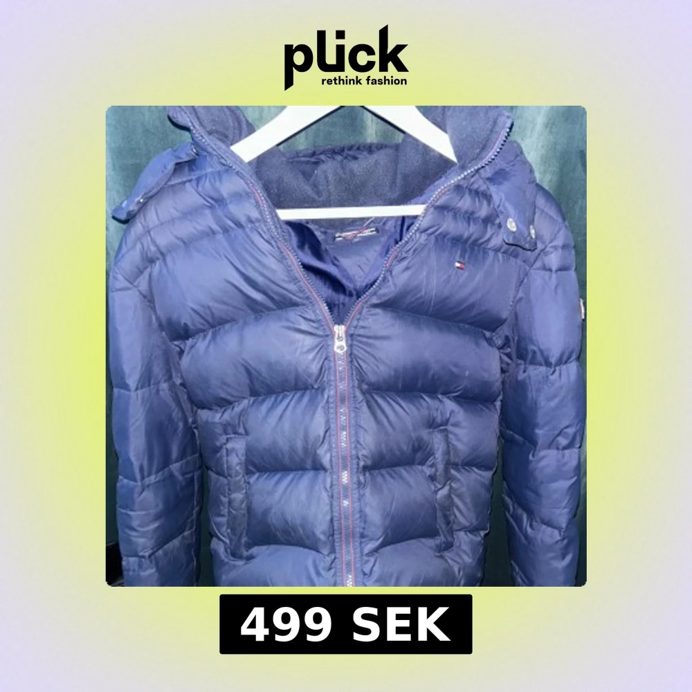 Säljer en blå pufferjacka från Tommy Hilfiger med huva och dragkedja framtill. Jackan har quiltad design, två sidofickor och logotyp på bröstet och ärmen. Perfekt för kalla dagar och har en snygg, sportig look. Luvan går att ta av. Pris 499. Ganska bra skick.