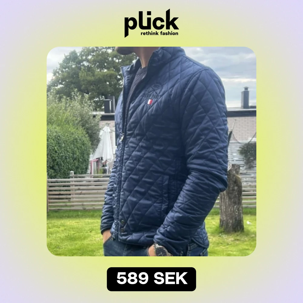 Säljer en snygg blå quiltad jacka med dragkedja och knappar(Märke JEAN PAUL). Jackan har en liten broderad logga på bröstet och är perfekt för höstvädret. Den är långärmad och har en normal passform. Passar perfekt för dig som vill ha en ny höstjacka