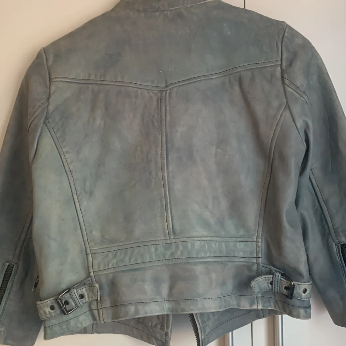 Vacker skinnjacka i äkta läder som passar perfekt för vår- och höst väder. Köpt från Hollies för 1300kr och säljer för 900kr💕