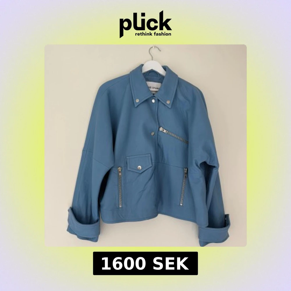 Säljer en blå skinnjacka från Stand Studio, modell Brooklyn Jacket, nypris drygt 5000kr. Jackan har silverfärgade dragkedjor, fickor med lock och en oversized passform. Materialet är äkta skinn, lamm nappa. Hängt bortglömd i min garderob, det vill säga oanvänd och i fint skick.