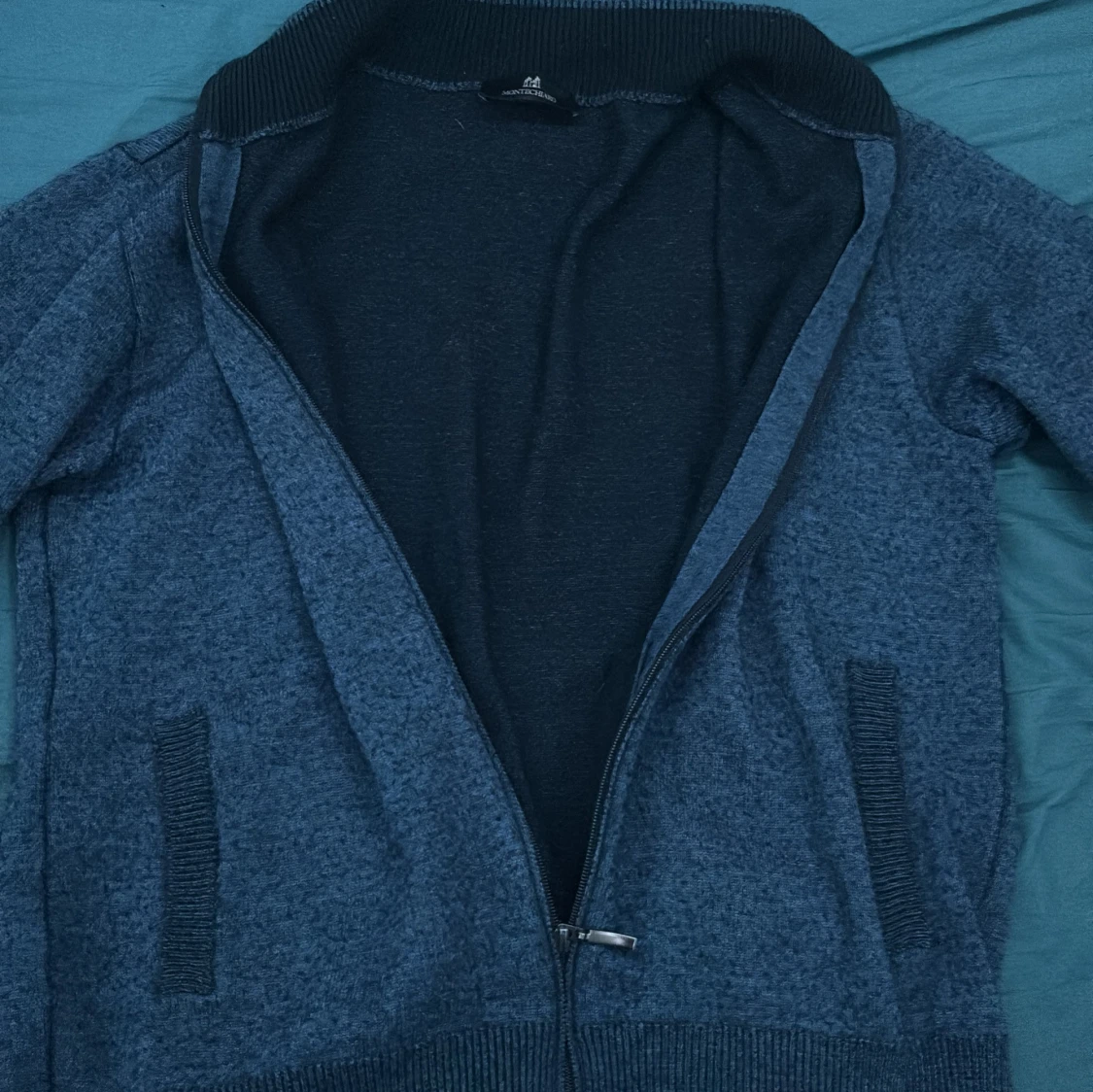 Säljer en snygg blå italiensk stickad fullzip ifrån Montechiaro.Nypris ligger på 2500-3000.Jackan har en dragkedja framtill och ribbstickade muddar vid ärmslut och nederkant. Perfekt för kyliga dagar! Storleken är S. Har ej aldrig använts då den inte passade mig som jag hade velat, skick 10/10. Hör av dig vid ytterligare frågor eller prisdiskutering!