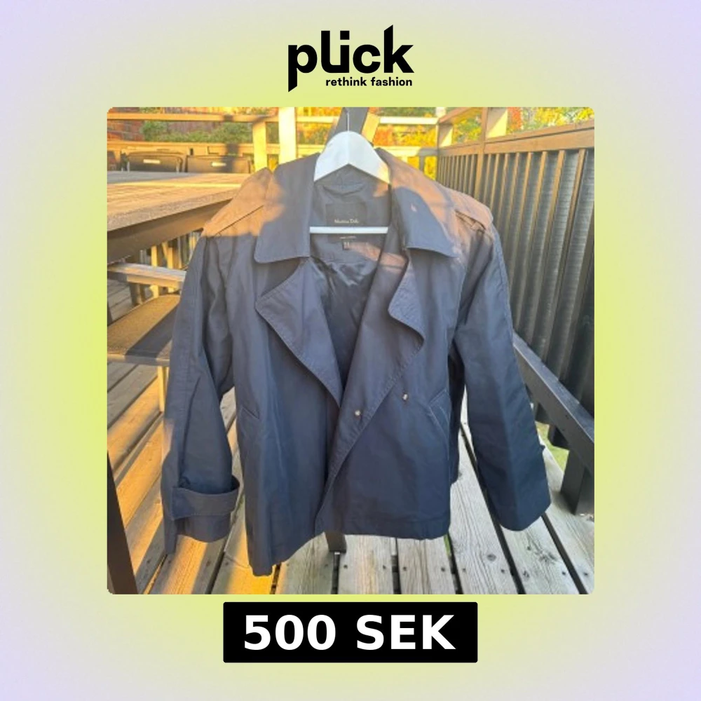 Säljer en blå trenchcoat från Massimo Dutti med klassisk krage, dubbelknäppning och snygga detaljer vid ärmsluten. Jackan har en loose passform