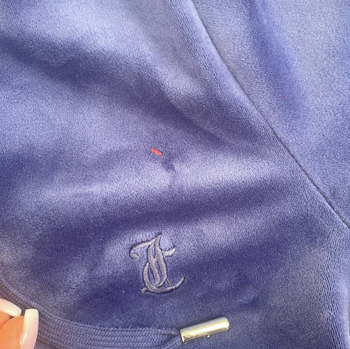 Säljer en blå velour hoodie från Juicy Couture med dragkedja. 2 defekter som syns på bild 2,3 men inget man tänker på! Pris går att diskutera!❤️❤️❤️