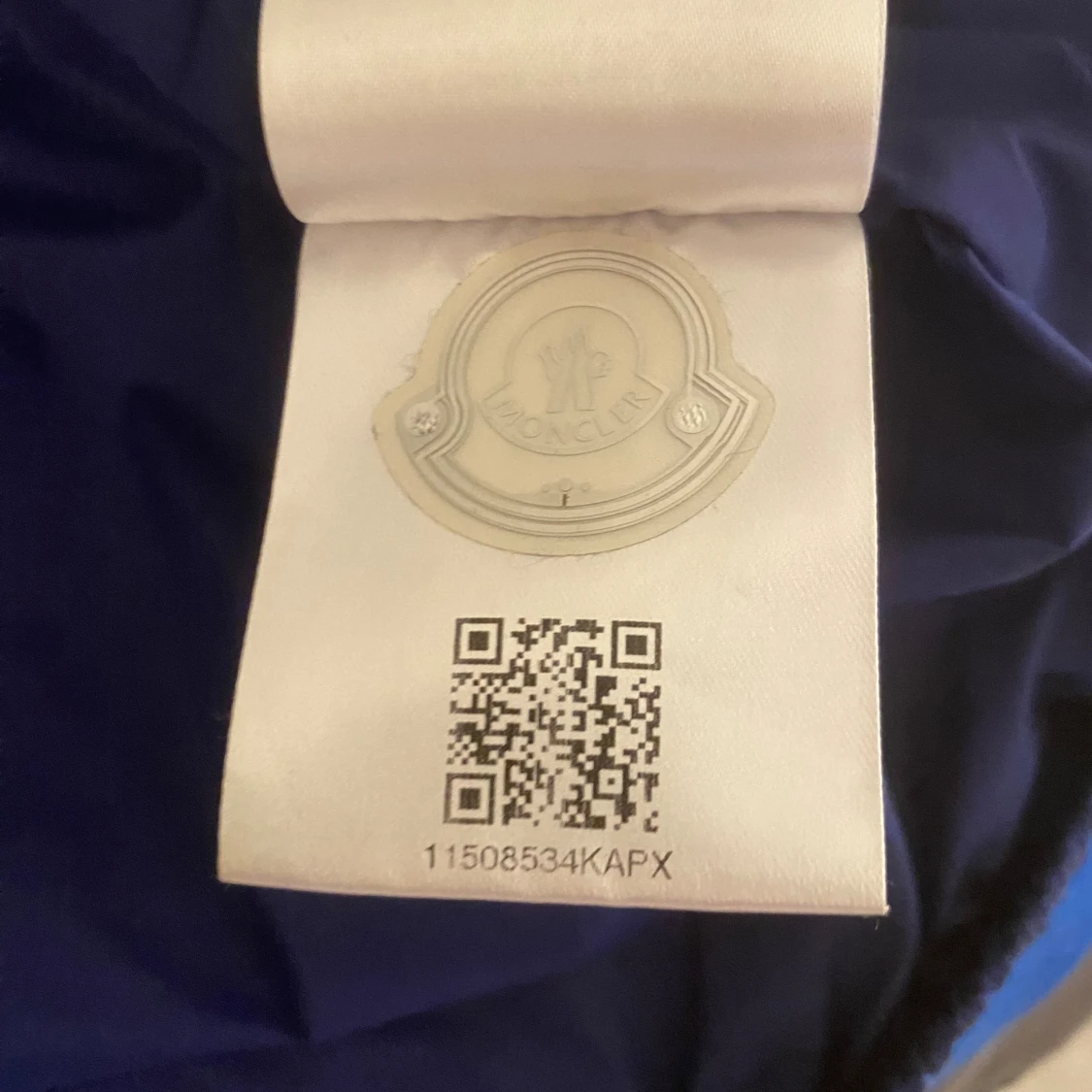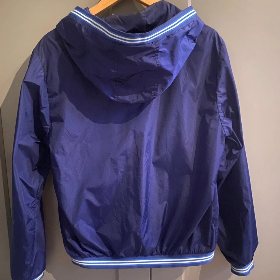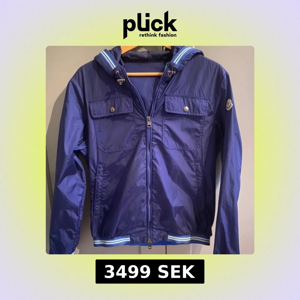 Snygg och stilren blå vindjacka från moncler. Jackan är nästan aldrig använd och har inga skador eller fläckar. Den är i storlek 1 - Small