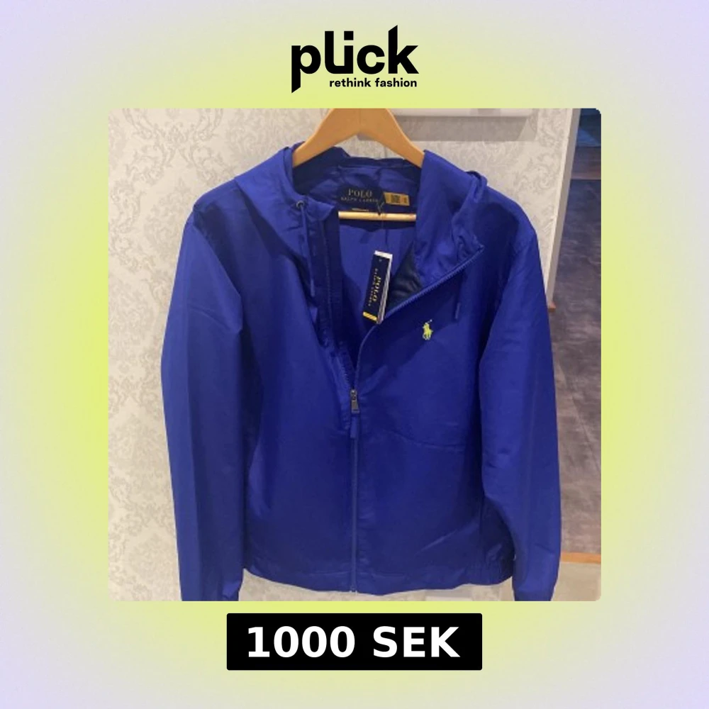 Snygg blå vindjacka från Polo Ralph Lauren med huva och dragkedja framtill. Jackan har klassisk gul broderad logga på bröstet och justerbar snörning i huvan. Perfekt för dig som gillar stilren och sportig look. Storlek L men passar M