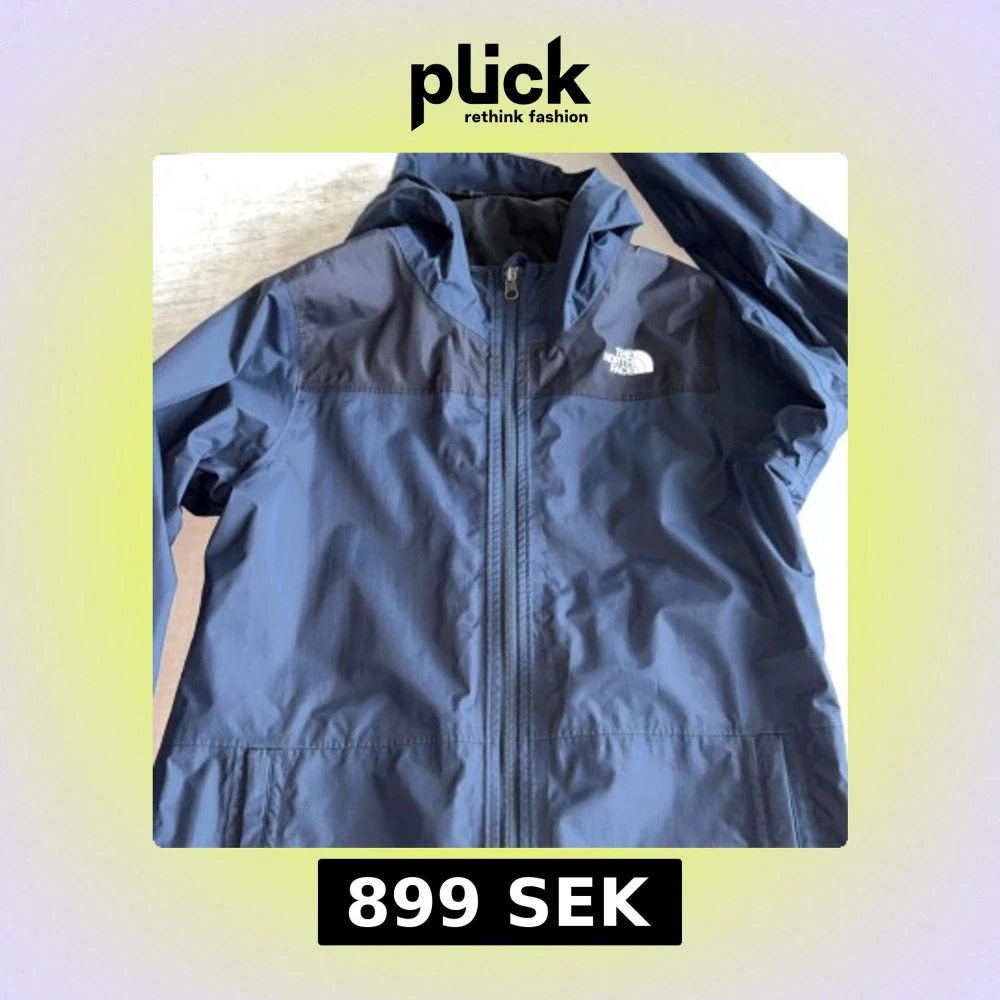 Snygg blå vindjacka från The North Face med huva och hel dragkedja framtill. Jackan har mörkare partier över axlarna och klassisk logga på bröstet. Perfekt för blåsiga dagar och enkel att matcha med streetwear. Materialet är lätt och känns sportigt. Pris går o diskutera