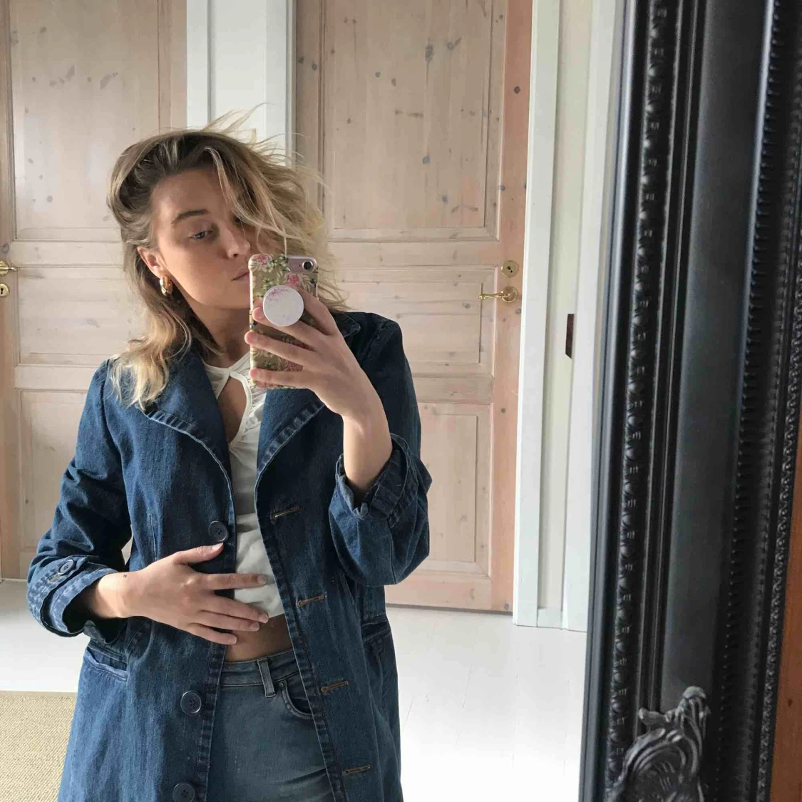 En fantastisk denimkappa inköpt second hand i Paris! Dessvärre kommer den inte ofta till användning av mig, så jag säljer den nu vidare. Härligt fall och passform!
