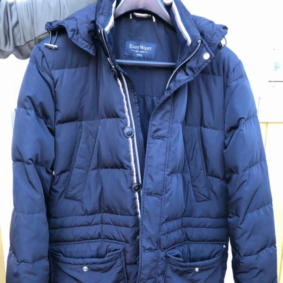 Säljer jätte fin East West dunjacka. Storlek Medium, Mörk blå färg.