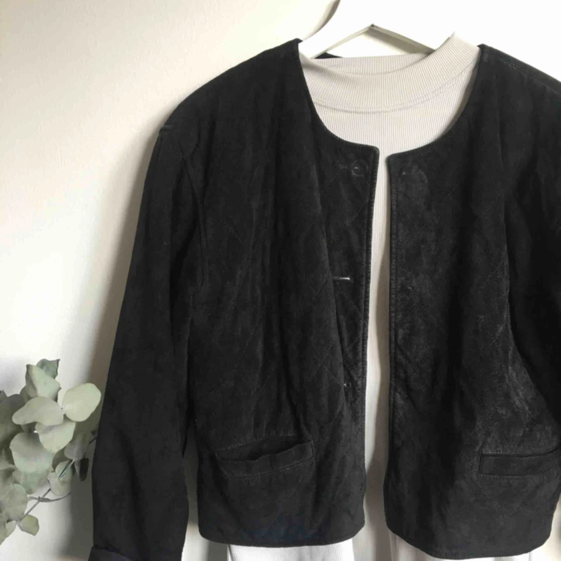 Läderjacka köpt second hand. Har inga knappar, men jag använde den öppen. 100% läder. Frakt tillkommer.