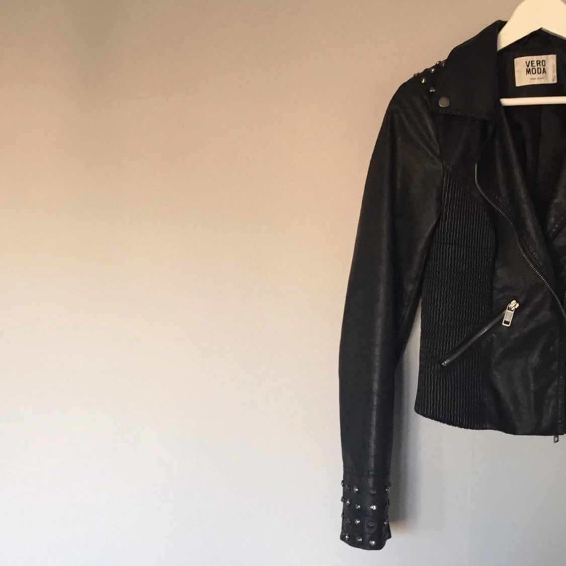 Svart skinnjacka med nitdetaljer från Vero Moda Köparen betalar frakten