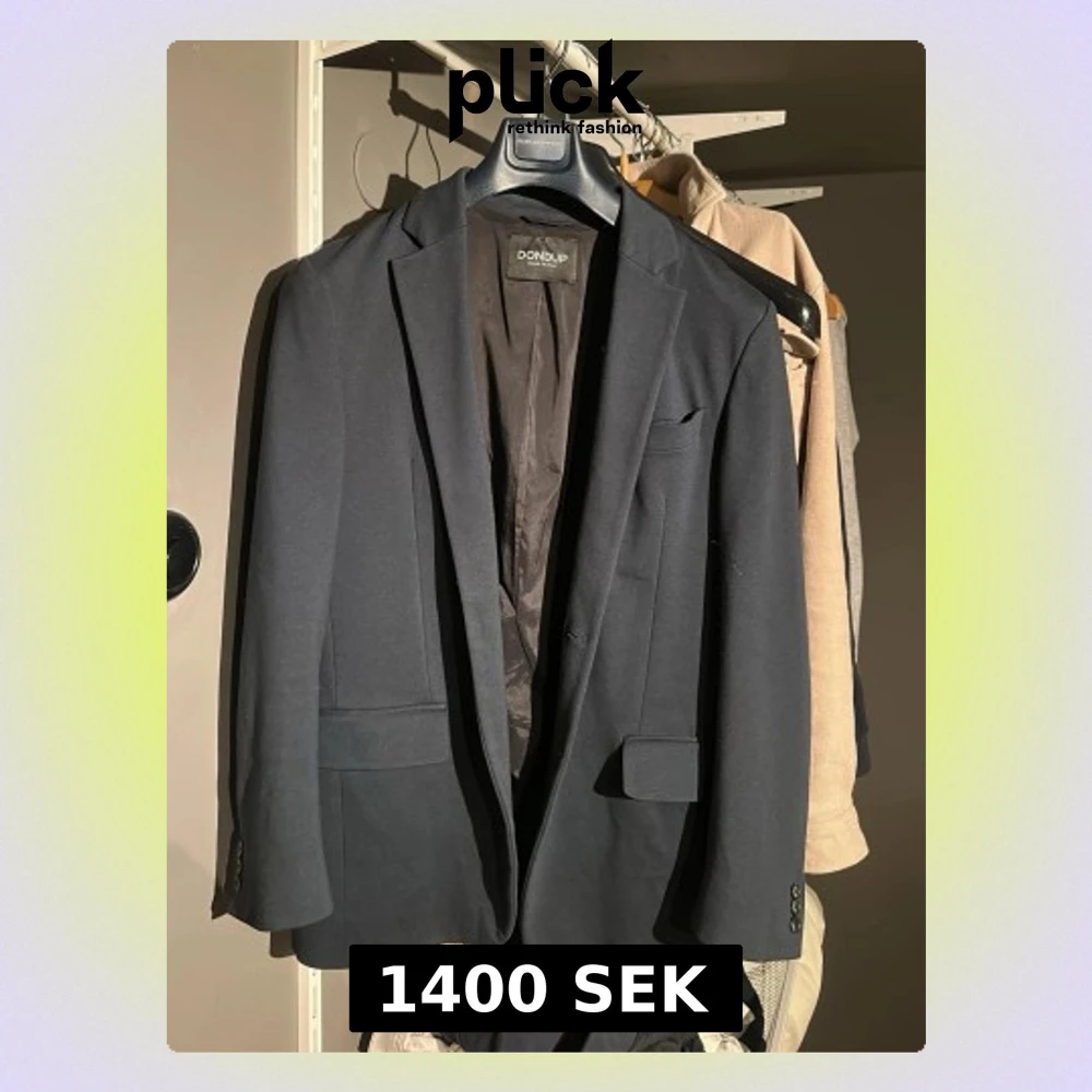 Säljer en mörkblå blazer från Dondup, tillverkad i Italien. Klassisk modell med smal passform, två fickor med lock och en bröstficka. Kavajen har släta knappar vid ärmsluten och är helfodrad med mjukt tyg. Perfekt för en clean och stilren look. Den är stretchig.