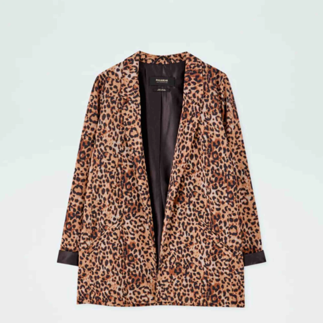 Helt ny oanvänd kavaj i leopardmönster. Bilderna är från pull and bears hemsida. Nypris 349.