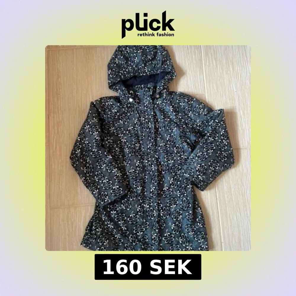 Mörkblå jacka från Name It med vita blommor över hela tyget. Jackan har huva, dragkedja framtill och är tillverkad i polyester med bomullsfoder. Perfekt för kyliga dagar och har en snygg, lekfull look.