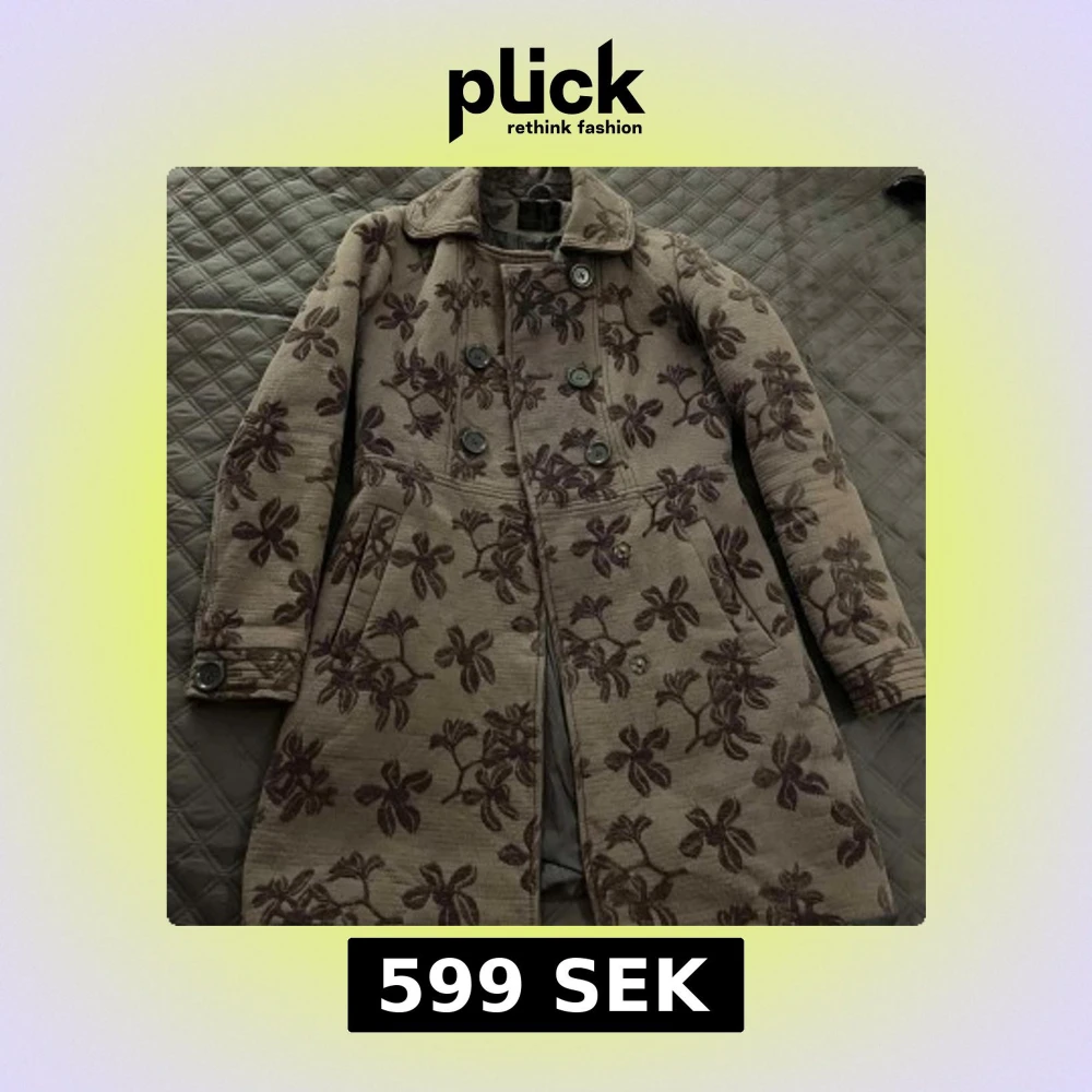 Säljer en elegant kappa från Vero Moda i beige med brunt blommönster. Den har en dubbelknäppt design med stora knappar och långa ärmar. Perfekt för att ge en stilfull touch till din garderob.