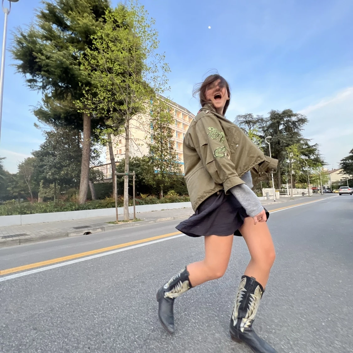 Säljer min gröna jeansjacka med tryck/broderier av blommor och orm osv! Jäääätte cool och unik!