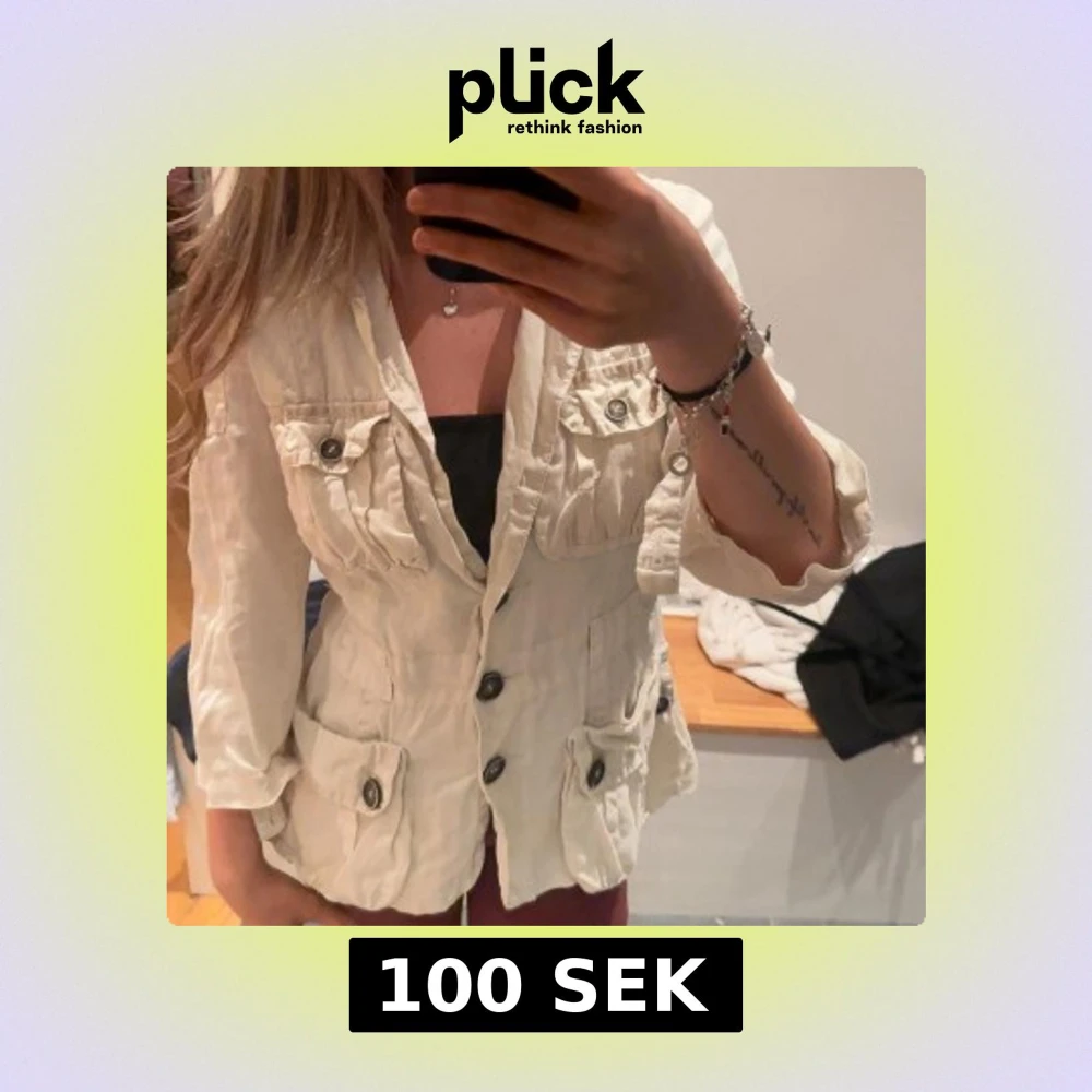 Snygg beige kavaj med fyra stora fickor framtill och markerad midja. Jackan har stora svarta knappar och trekvartsärmar, perfekt för en chill och stilren look. Materialet känns lätt och passar bra till vår och höst.