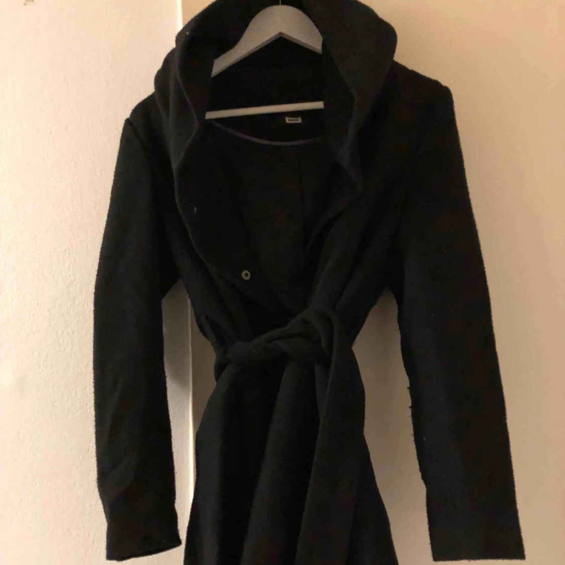 Lång svart kappa med stor luva och skärp. Fint skick. Köparen står för frakten.