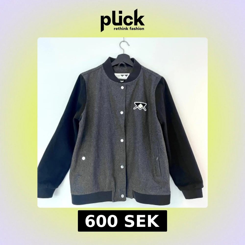 Snygg grå och svart bomberjacka från Junkyard i storlek L. Jackan har klassisk college-look med svarta ärmar, ribbade muddar och tryckknappar framtill. Runs a bit small in size. Perfekt för dig som gillar streetstyle.